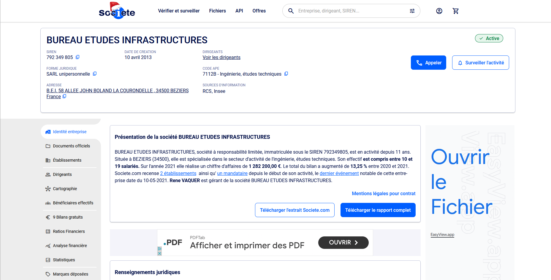 Il participe activement à la conception de la Zone d’Aménagement Concerté « Garenque » via la société BETU mais aussi via la société Bureau d’Etudes Infrastructures (BEI), sise La Courondelle – 58 allée John Boland – 34500 BEZIERS, dont il est encore une fois le gérant.